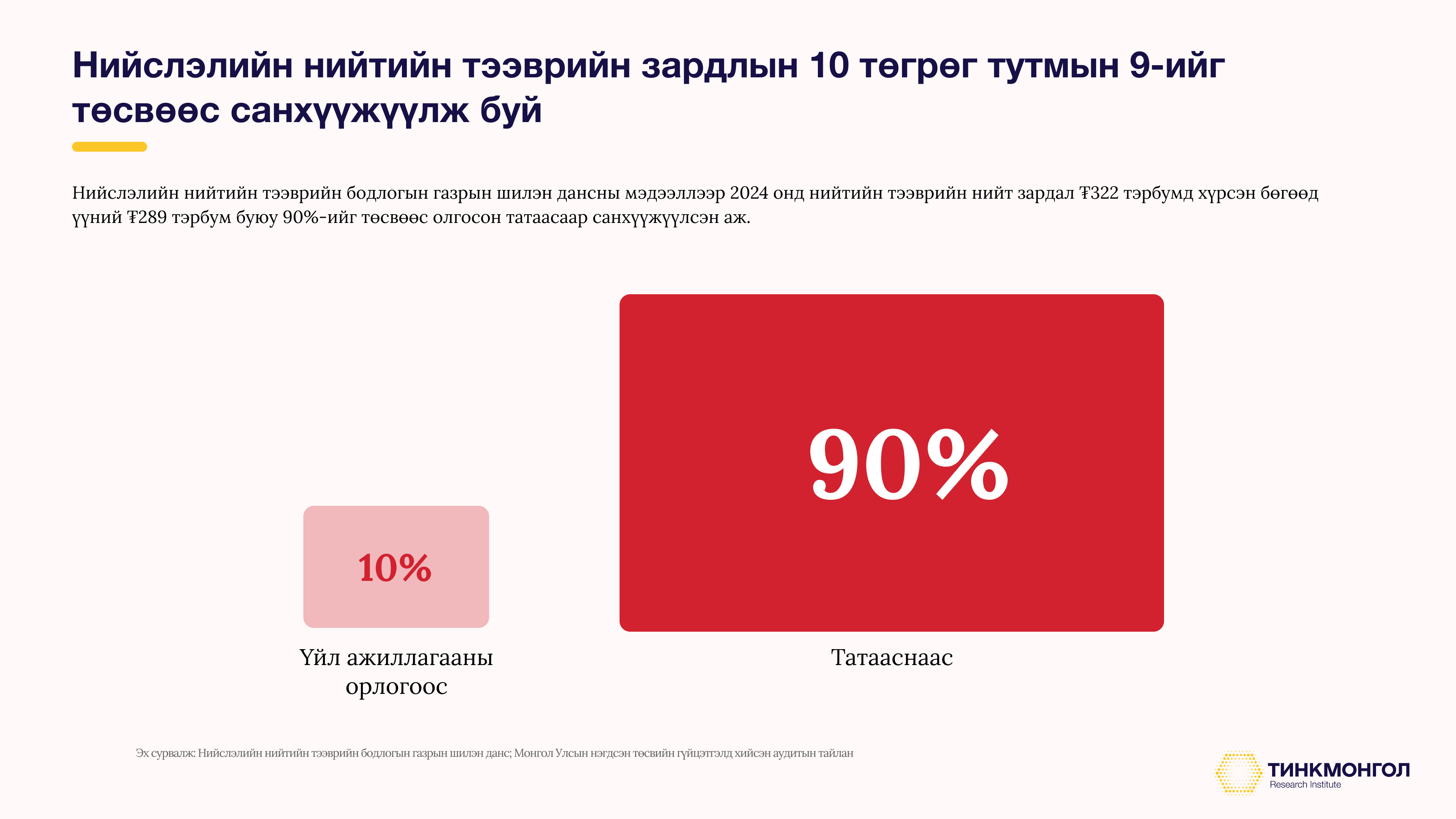 Татаасны дүн 2024 онд ₮289 тэрбум хүрсэн нь ердөө жилийн өмнөхөөс ₮123 тэрбум буюу 74%-аар өсжээ. Харин 2025 оны эхний хагаст нийтийн тээврийн алдагдалд ₮179 тэрбумыг олгосон нь 2 жилийн өмнөх бүтэн жилийн дүнгээс ₮12 тэрбумаар өндөр дүн боллоо.